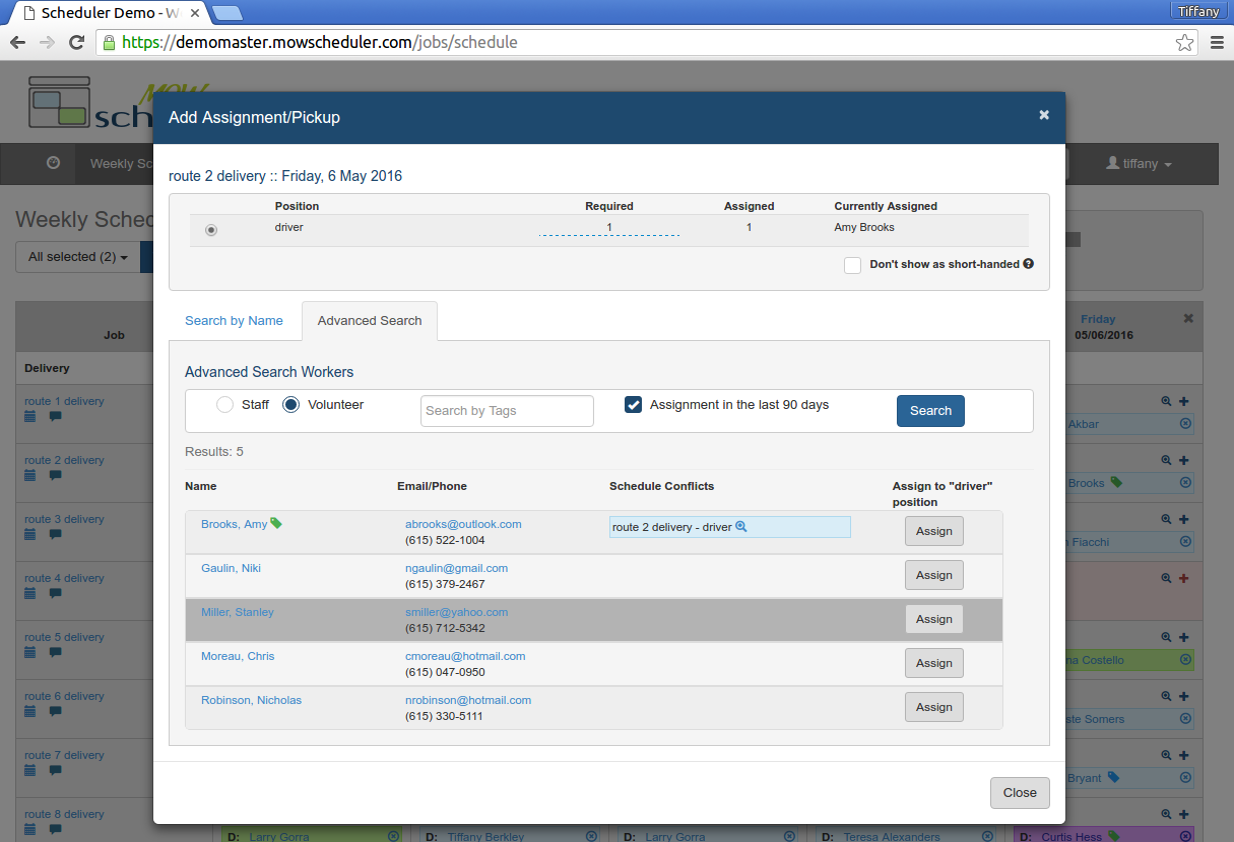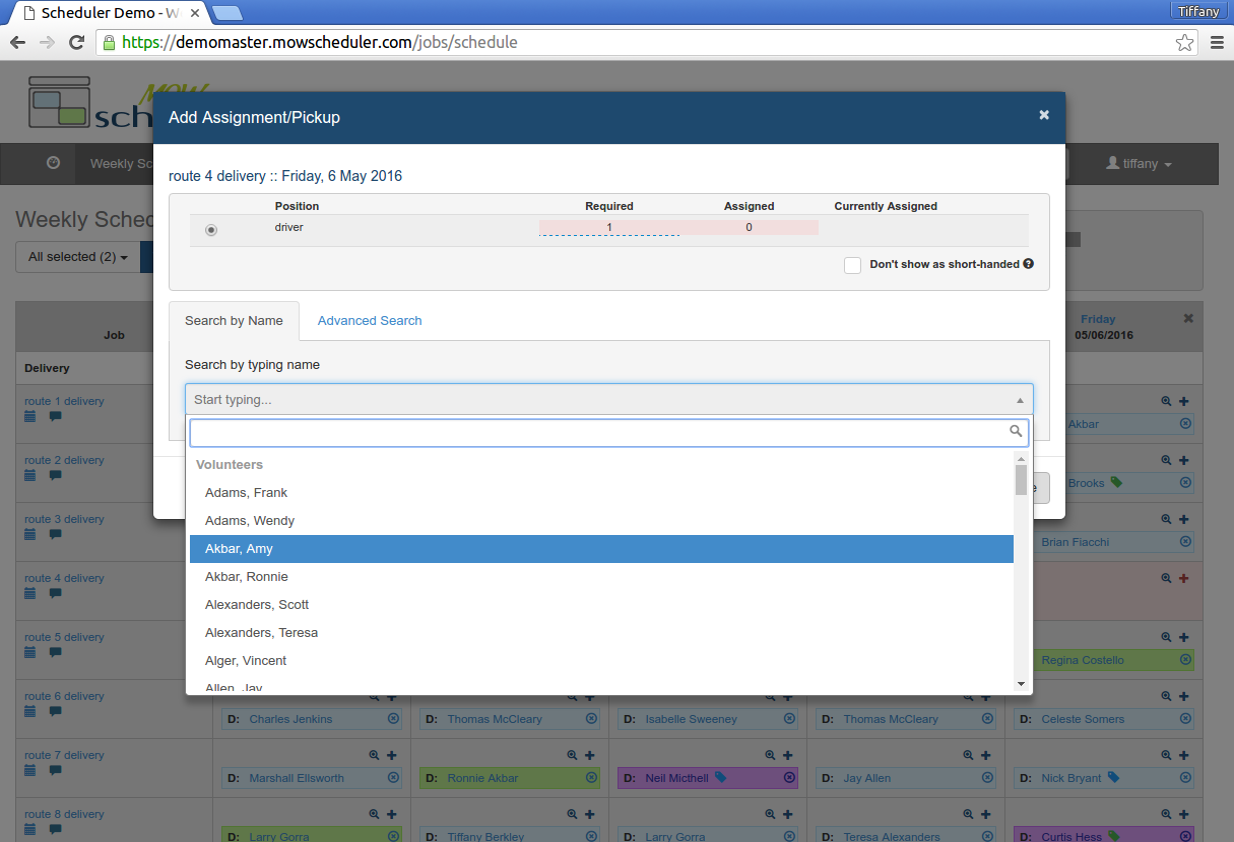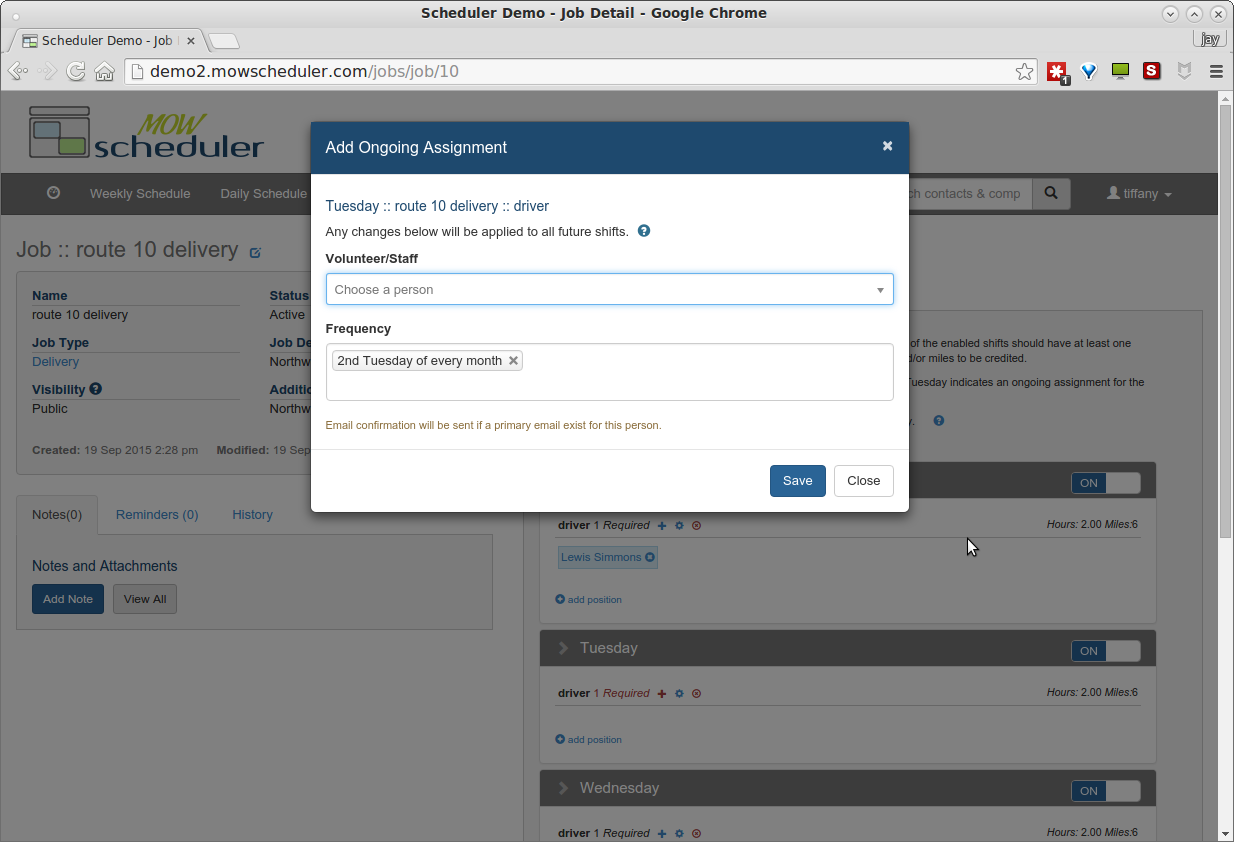 Schedule a volunteer to a recurring weekly or monthly assignment.