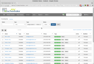 Find volunteers and staff members by name, contact type, status, or your own custom tags.